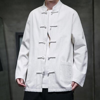 Buddha Stones Solid Color Frog-button Cotton Men’s Jacket Shirt Clothing