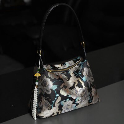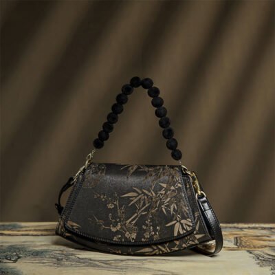 Buddha Stones Osmanthus Rabbit Embroidery Pearl Chain Furball Tassel Shoulder Bag Crossbody Bag