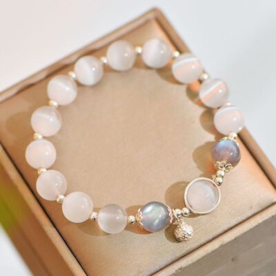 Buddha Stones 925 Sterling Silver Cat’s Eye Hetian Jade Butterfly Peace Lock Charm Peace Bracelet