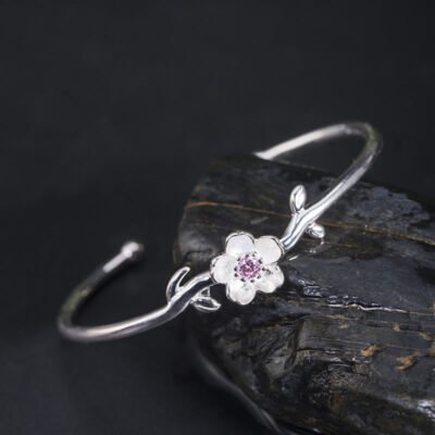 Buddha Stones 925 Sterling Silver Cherry Blossom Flower Rotatable Protection Necklace Pendant