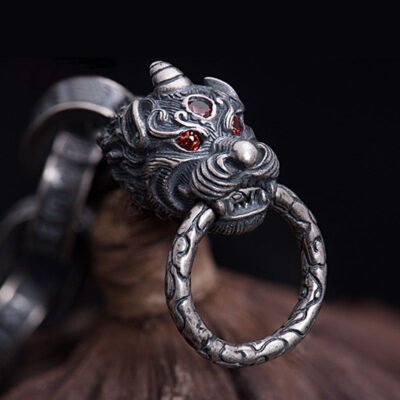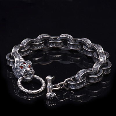 Buddha Stones 925 Sterling Silver Faceless Cat Head Natural Red Flower Quartz Passion Bracelet