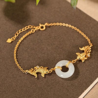 Buddha Stones White Jade Koi Fish Wealth Prosperity Necklace Pendant