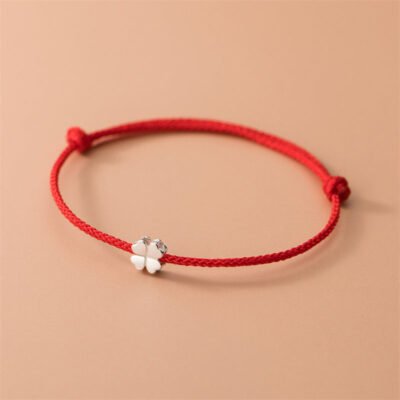 Buddha Stones 925 Sterling Silver Four Leaf Clover White Jade Red Agate Abundance Necklace Pendant