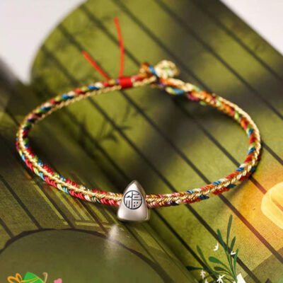 Buddha Stones 925 Sterling Silver Good Fortune Fu Character Agate Pearl Red String Braid Bracelet