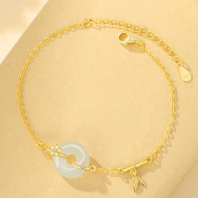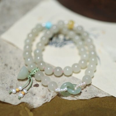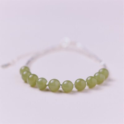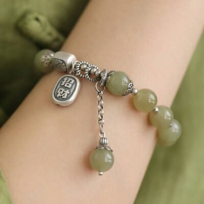 Buddha Stones 925 Sterling Silver Hetian Jade Peace Buckle Beaded Luck Happiness Charm Bracelet