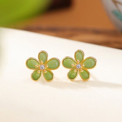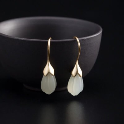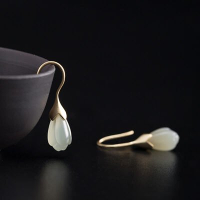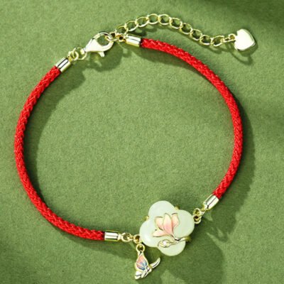 Buddha Stones 925 Sterling Silver Hetian Jade Magnolia Flower Butterfly Luck Chain Bracelet