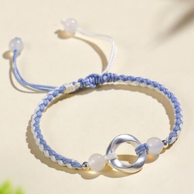 Buddha Stones 925 Sterling Silver Mobius White Agate Bead Braided String Protection Bracelet