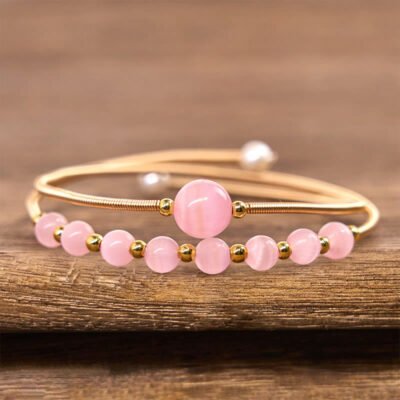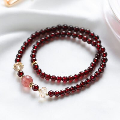 Buddha Stones 14K Gold Plated Natural Garnet Strawberry Quartz Stability Double Wrap Bracelet