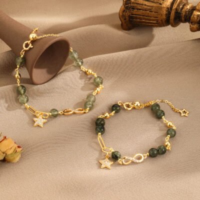 Buddha Stones 14K Gold Green Rutilated Quartz Möbius Loop Eternal Love Star Protection Bracelet