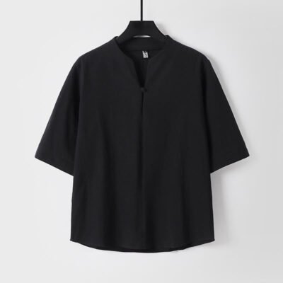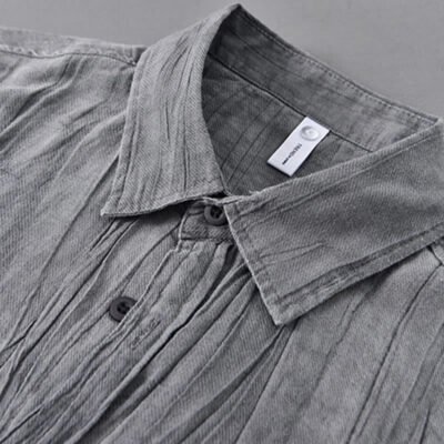 Buddha Stones Spring Solid Color Pleated Stand Collar Design Tang Suit Men’s Long Sleeve Linen Shirt