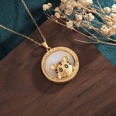 Buddha Stones White Jade Year of the Tiger Blessing Necklace