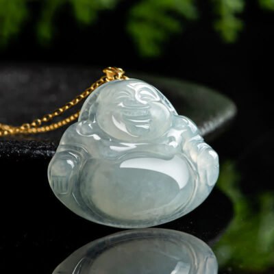 Laughing Buddha Natural Jade 18K Gold Abundance Necklace Pendant
