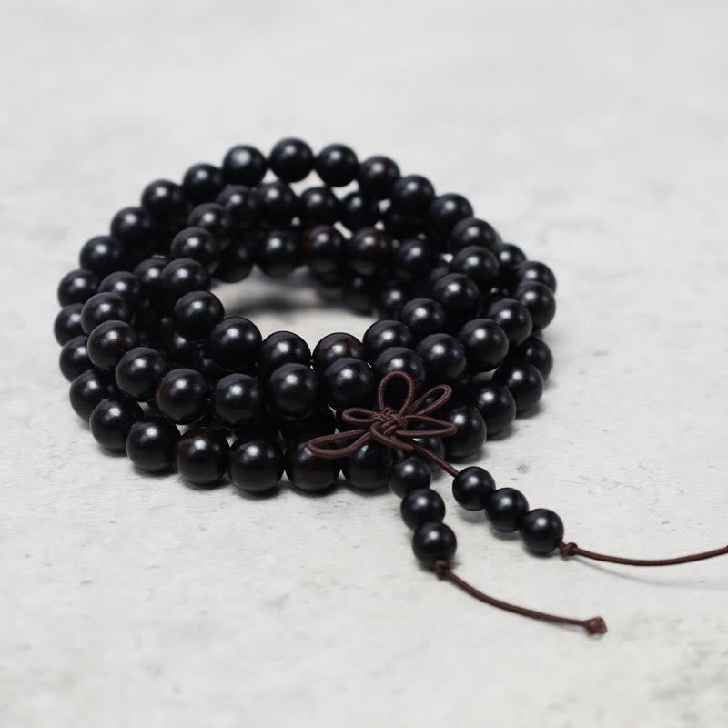 Experience tranquility with the Buddha Stones 108 Mala Beads Bracelet. This elastic sandalwood bracelet features 108 beads for prayer and meditation. Crafted with rosewood. ebony wood. and wenge wood. it promotes calmness. balance. and protection. Perfect for daily spiritual practice.