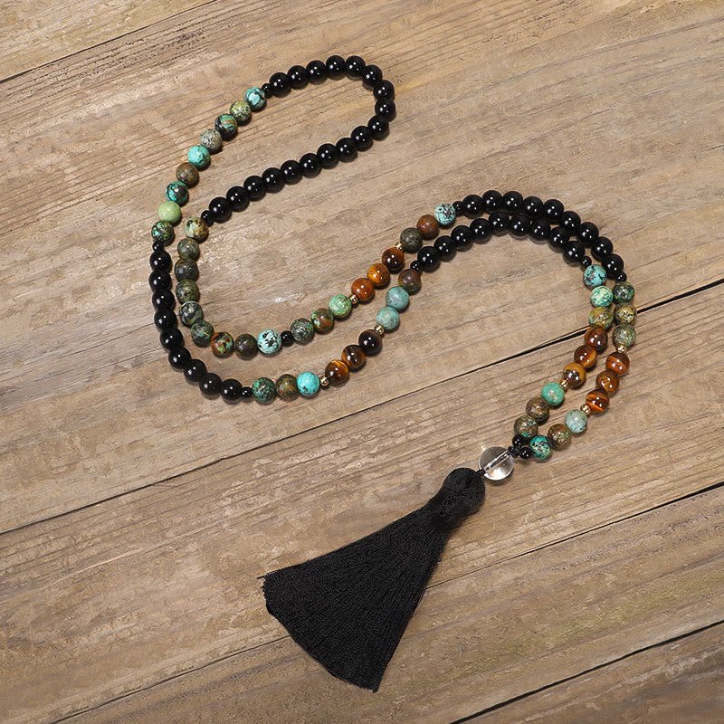Buddha Stones 108 Mala Beads Natural Stone Tiger Eye Turquoise Protection Strength Bracelet Necklace