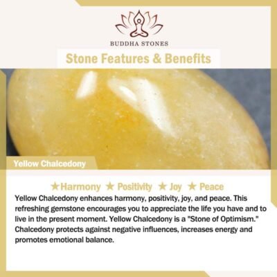 Yellow Chalcedony enhances harmony. positivity. joy. and peace. This refreshing gemstone encourages you to appreciate the life you have and to live in the present moment. Yellow Chalcedony is a “Stone of Optimism.” Chalcedony protects against negative influences. increases energy and promotes emotional balance.