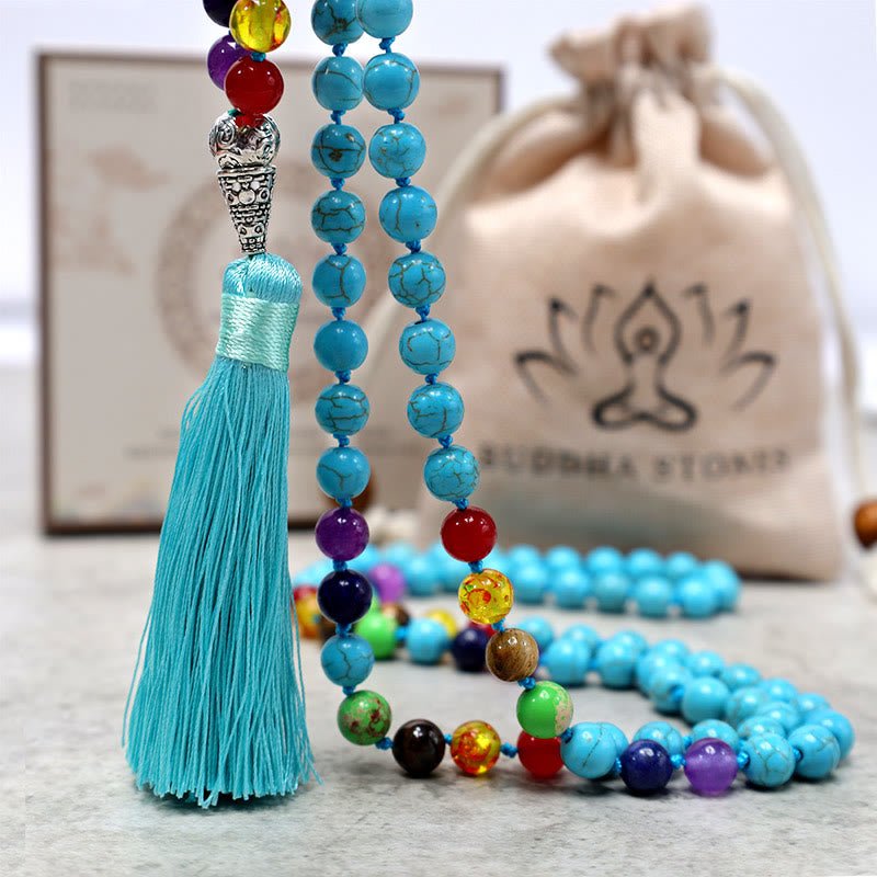 Buddha Stones 108 Mala Turquoise Beads Yoga Meditation Prayer Beads Necklace