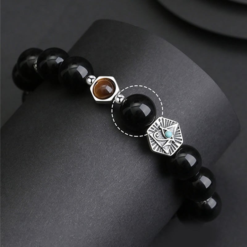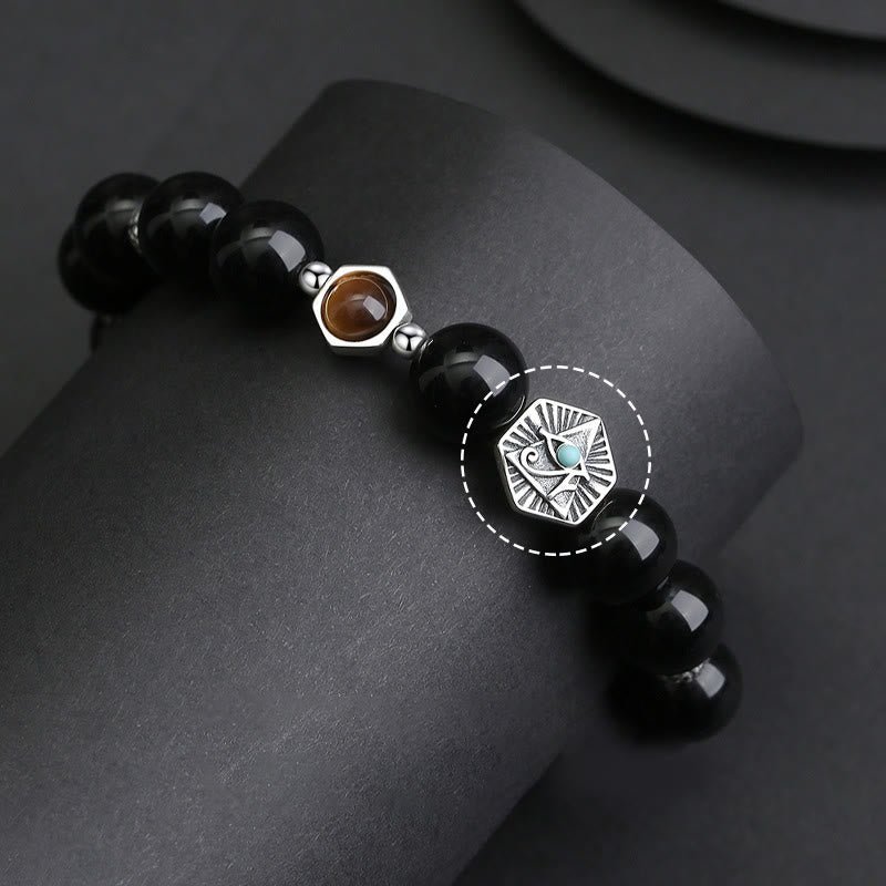 • Bead Size: 925 Sterling Silver. Black Obsidian 8mm. Tiger Eye 6mm. Eye of Providence 11.5*10.4mm