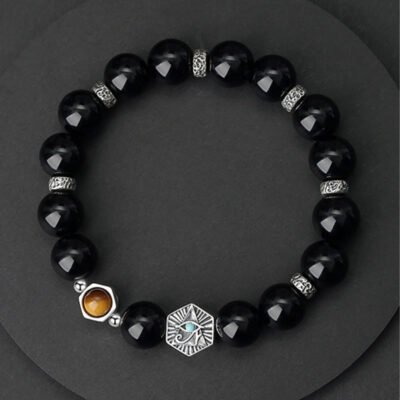 Be the first to review “Buddha Stones 925 Sterling Silver Black Obsidian Tiger Eye Eye of Providence Purification Bracelet”