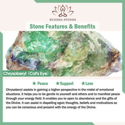 Chrysoberyl assists in gaining a higher perspective in the midst of emotional situations. It helps you to be gentle to yourself and others and to manifest peace through your energy field. It enables you to open to abundance and the gifts of the Divine. It can assist in dispelling egoic thoughts. beliefs. and motivations so you can be conscious and present with the energy of the Divine.