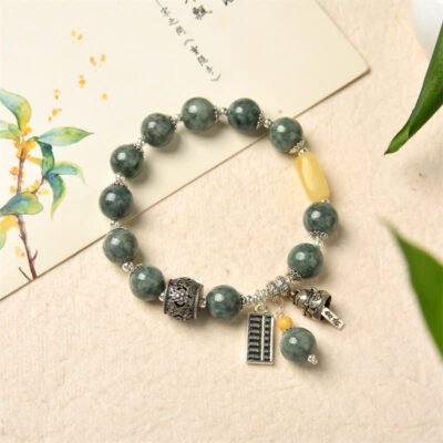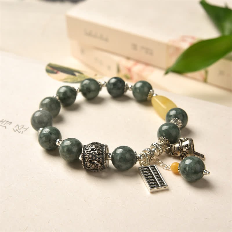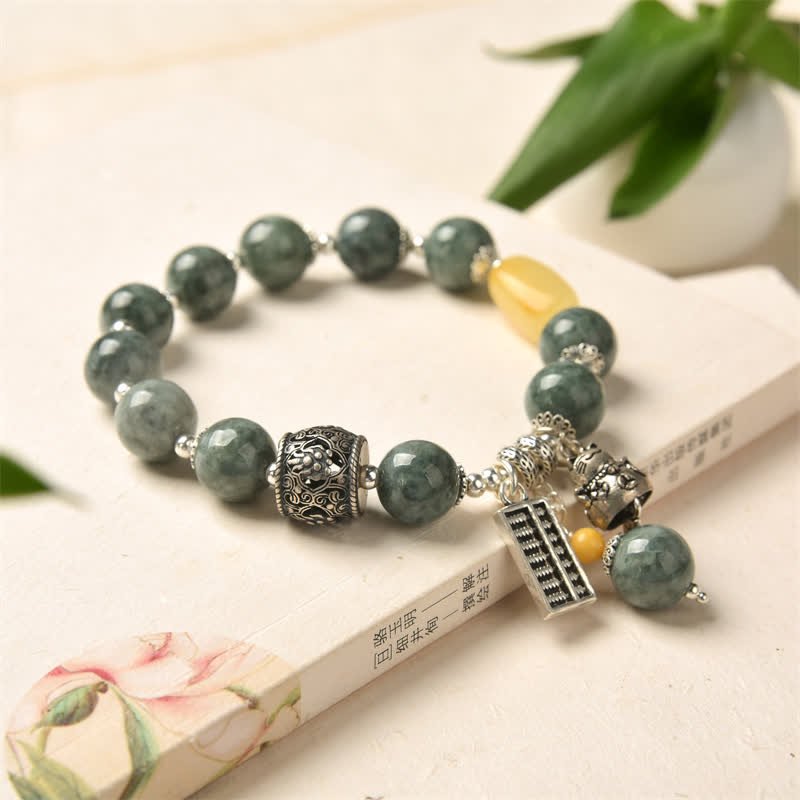 Buddha Stones 925 Sterling Silver Cyan Jade Amber Abacus Lucky Cat Success Bracelet