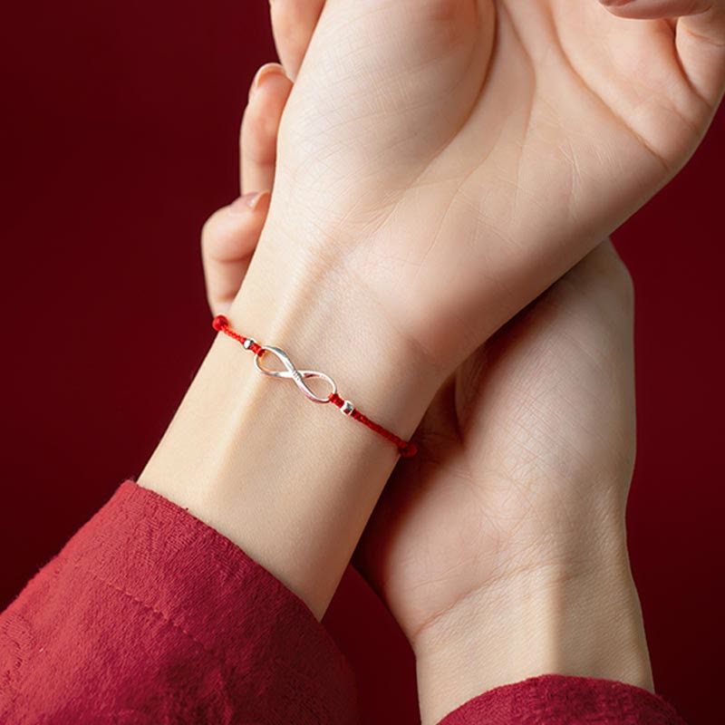 Buddha Stones 925 Sterling Silver Endless Knot Protection Luck Red String Bracelet Anklet