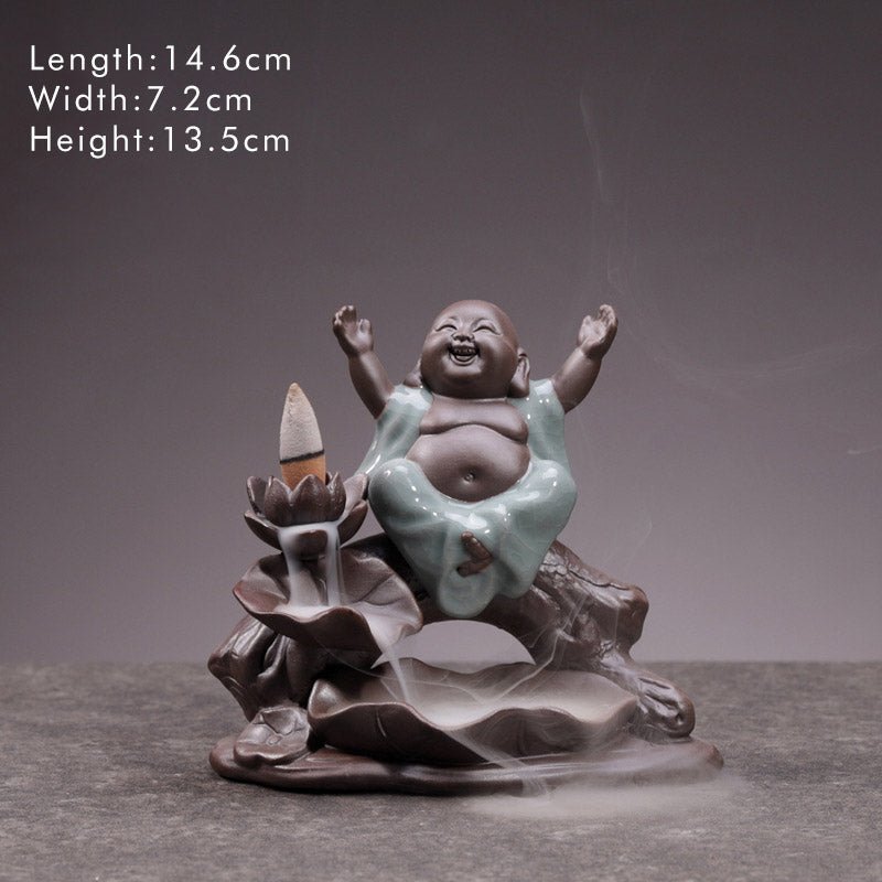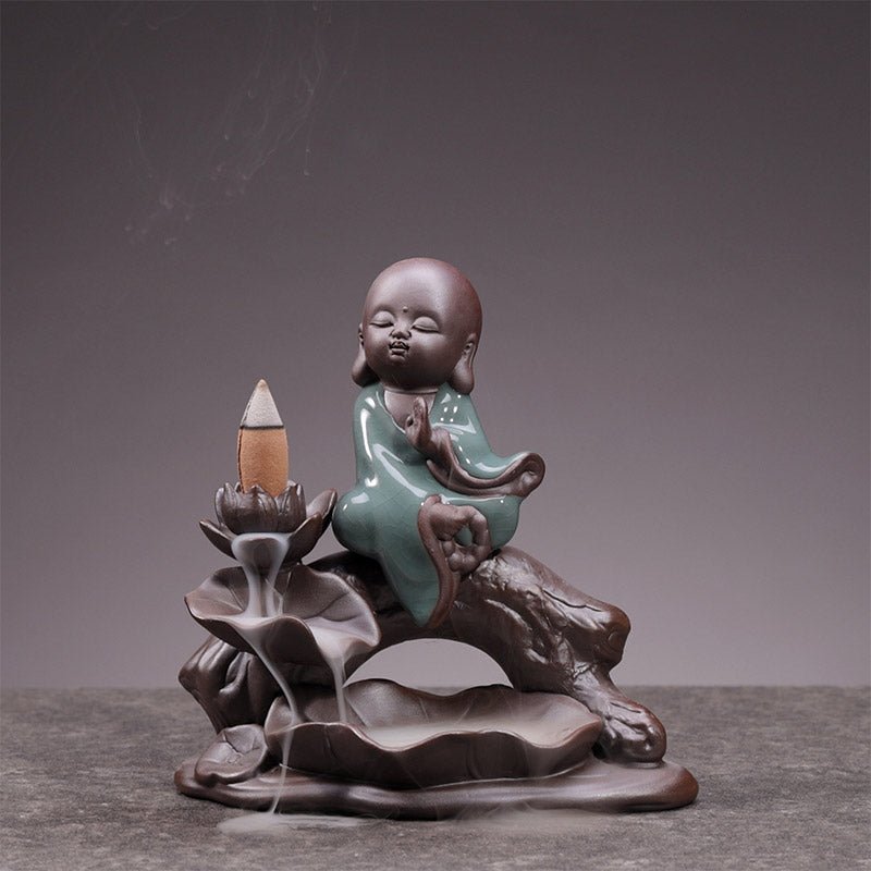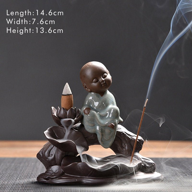 Buddha Stones Little Monk Ceramic Lotus Blessing Incense Burner Decoration