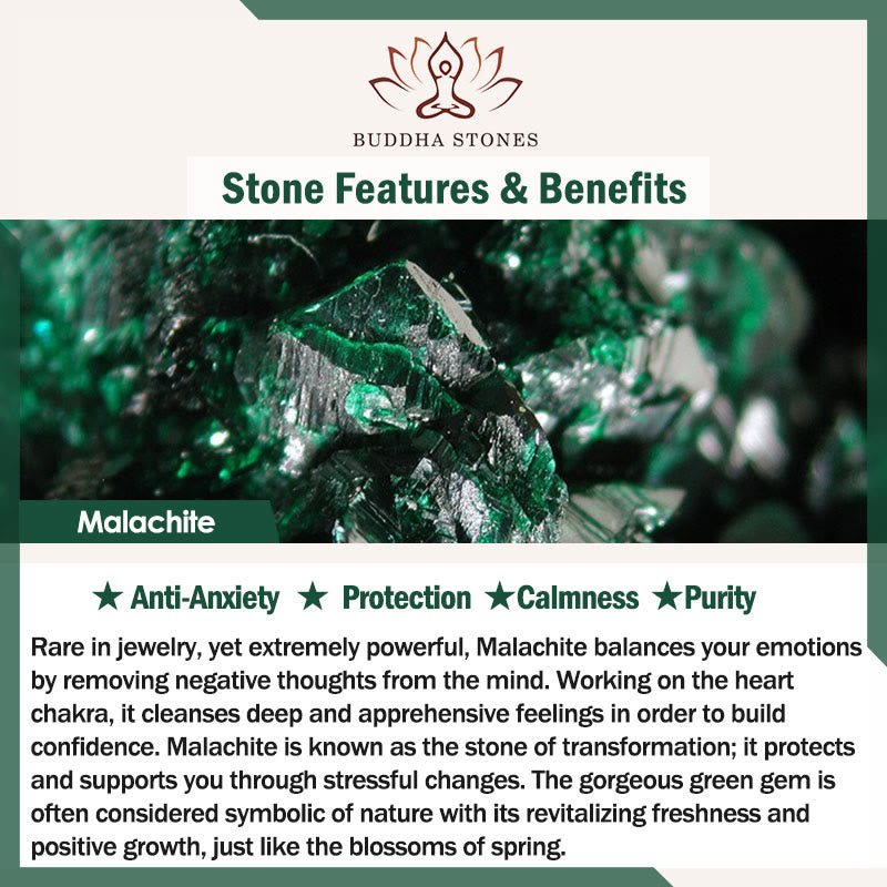 Rare in jewelry. yet extremely powerful. Malachite balances your emotions by removing negative thoughts from the mind. Working on the heart chakra. it cleanses deep and apprehensive feelings in order to build confidence. Malachite is known as the stone of transformation; it protects and supports you through stressful changes. The gorgeous green gem is often considered symbolic of nature with its revitalizing freshness and positive growth. just like the blossoms of spring. Release anxiety and relax.