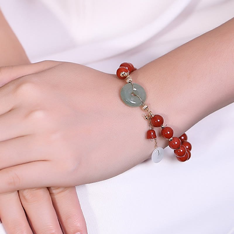 Buddha Stones 14k Gold Filled Jade Red Agate Peace Buckle Copper Coin Gourd Confidence Bracelet