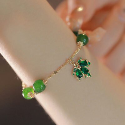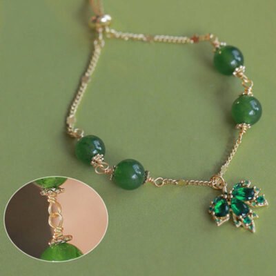Be the first to review “Buddha Stones 14k Gold Plated Green Chalcedony Maple Leaf Courage Strength Bracelet”