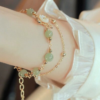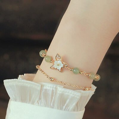 Be the first to review “Buddha Stones 14K Gold Plated Jade Butterfly Tridacna Stone Flower Double Layer Luck Bracelet”