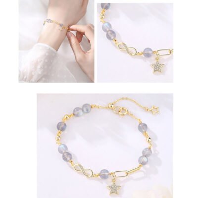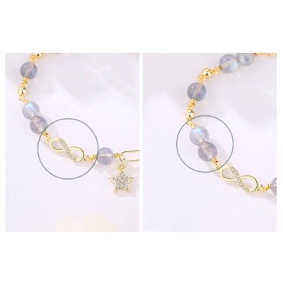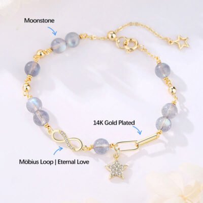 Be the first to review “Buddha Stones 14K Gold Plated Natural Strawberry Quartz Moonstone Möbius Loop Eternal Love Star Positive Bracelet”