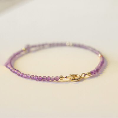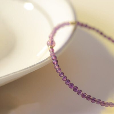 Natural Amethyst Meditation Bracelet features ultra-thin amethyst beads and 14k gold-plated copper. designed to promote inner peace and tranquility. Amethyst is known for its ability to calm the mind and alleviate stress. making it ideal for meditation and mindfulness practices. This bracelet supports spiritual growth and emotional healing. helping to achieve balance and clarity during meditation or moments of reflection.💕