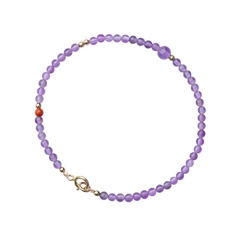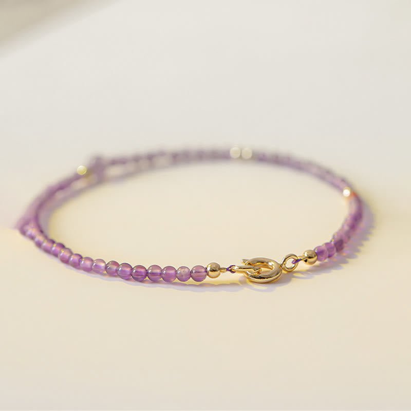 Buddha Stones 2mm Ultra-Thin Beads Natural Amethyst 14k Gold Plated Copper Inner Peace Meditation Bracelet