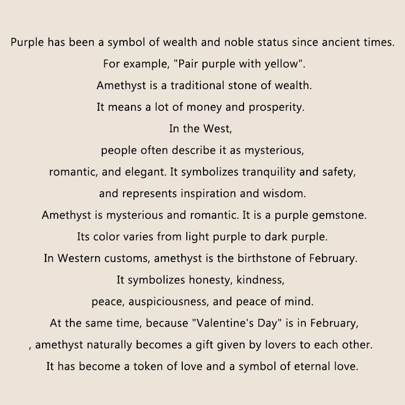 • Note: Due to the nature of the Amethyst. this piece may feature slight variations in color. details. and overall appearance. Such characteristics enhance the unique beauty of each piece.