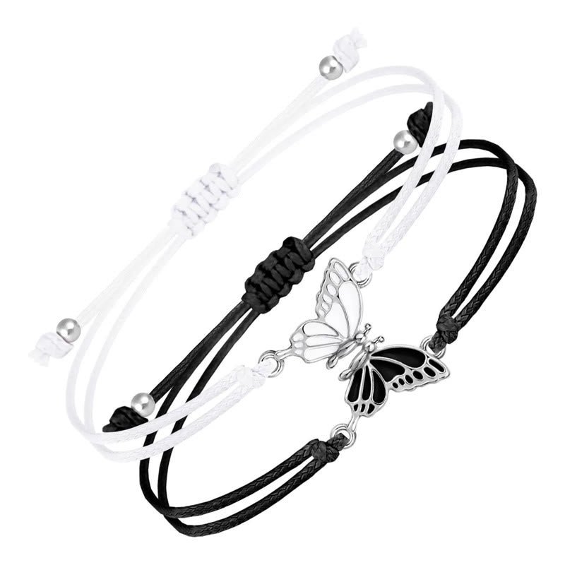 Buddha Stones 2Pcs Handmade Braided Rope Butterfly Freedom Bracelet