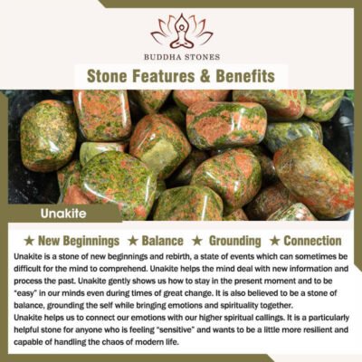 Unakite is a stone of new beginnings and rebirth. a state of events which can sometimes be difficult for the mind to comprehend. Unakite helps the mind deal with new information and process the past. Unakite gently shows us how to stay in the present moment and to be “easy” in our minds even during times of great change. It is also believed to be a stone of balance. grounding the self while bringing emotions and spirituality together.