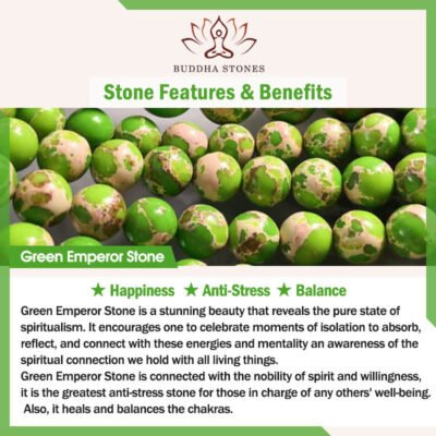 Green Emperor Stone is connected with the nobility of spirit and willingness. it is the greatest anti-stress stone for those in charge of any others’ well-being Also.it heals and balances the chakras.