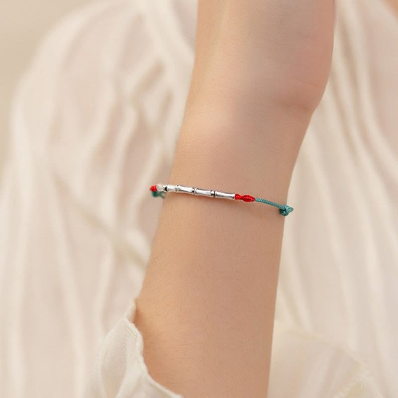 Buddha Stones 925 Sterling Silver Bamboo Design Luck Braided Ultra-Thin Rope Bracelet