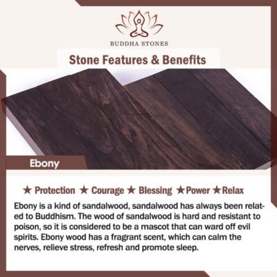 Ebony is a kind of sandalwood. sandalwood has always been related to Buddhism. The wood of sandalwood is hard and resistant to poison. so it is considered to be a mascot that can ward off evil spirits. Ebony wood has a fragrant scent. which can calm the nerves.relieve stress. refresh and promote sleep.