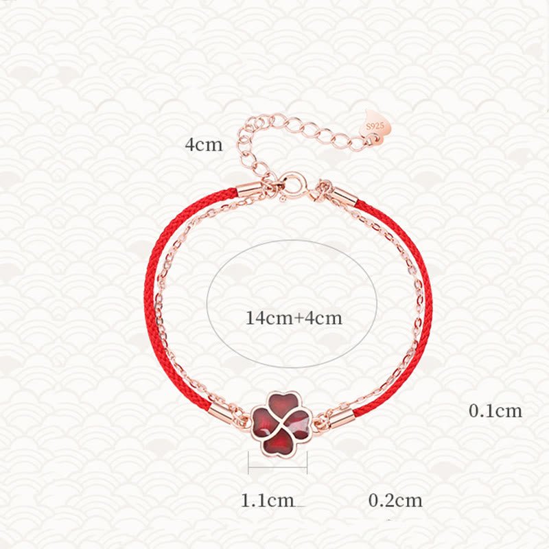 Buddha Stones 925 Sterling Silver Color-changing Four Leaf Clover Luck Protection Red String Bracelet