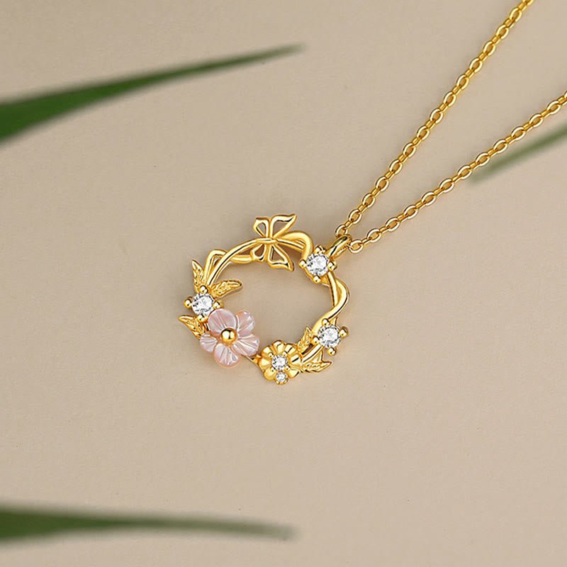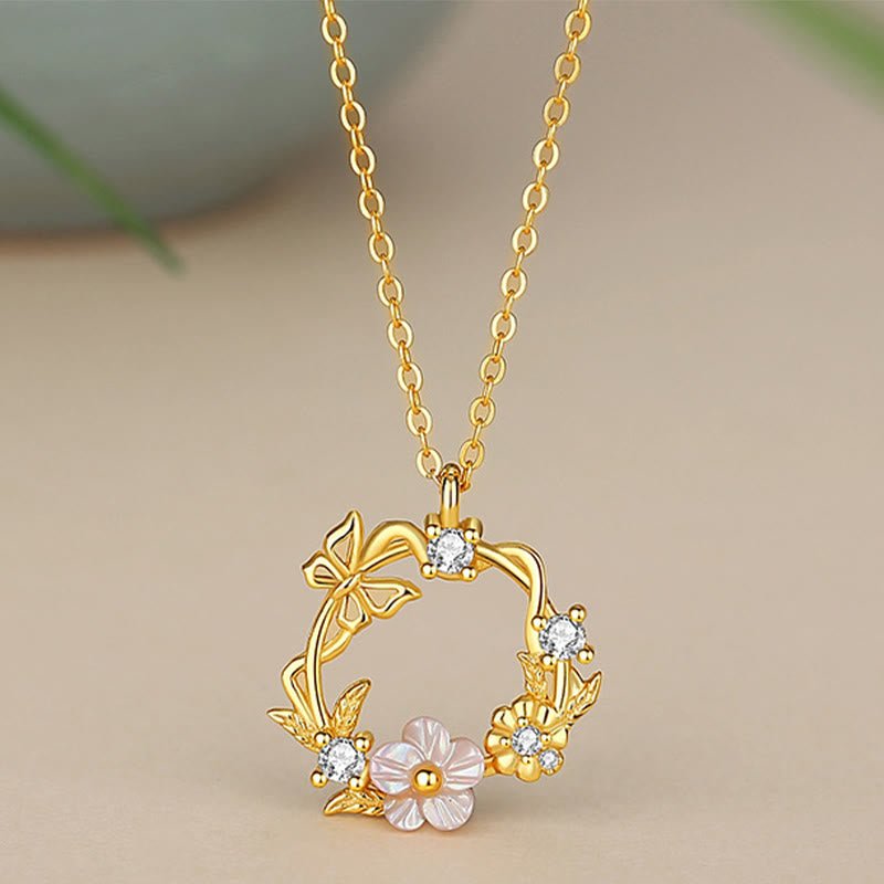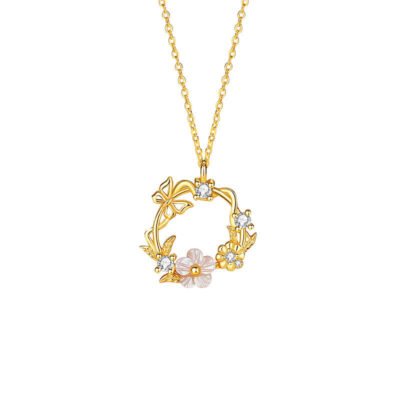 Sterling Silver Butterfly Shell Pendant Necklace features a circular pendant crafted from 925 sterling silver. cubic zirconia. and shell elements. The pendant symbolizes harmony and balance. with the delicate butterfly and peach blossom design representing blessings and renewal. This necklace serves as a reminder of transformation and beauty. combining elegance with meaningful symbolism for spiritual well-being and good fortune.💕