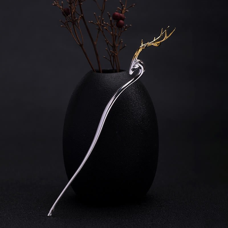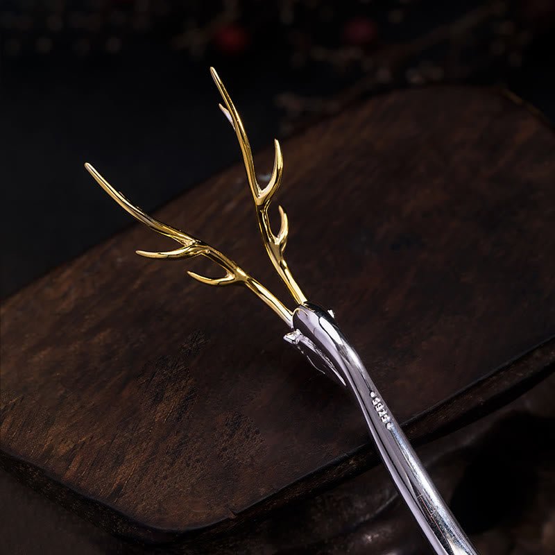Buddha Stones 925 Sterling Silver Deer Antler Protection Hairpin