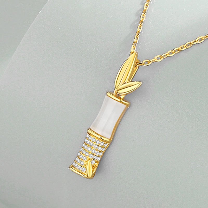 Buddha Stones 925 Sterling Silver Hetian White Jade Bamboo Happiness Necklace Pendant