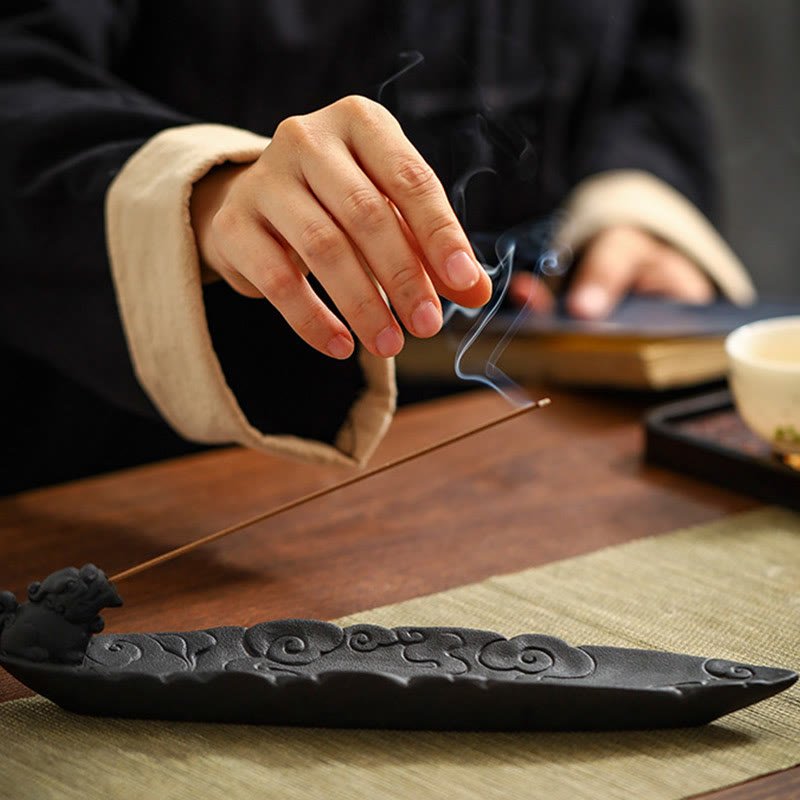 Buddha Stones Auspicious Clouds Pixiu Healing Ceramic Stick Incense Burner Decoration