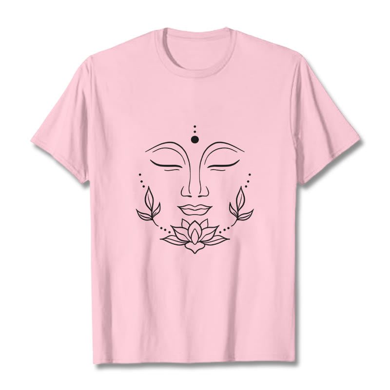 Buddha Stones Casual Buddha Face Lotus Flower Pattern Tee T-Shirt
