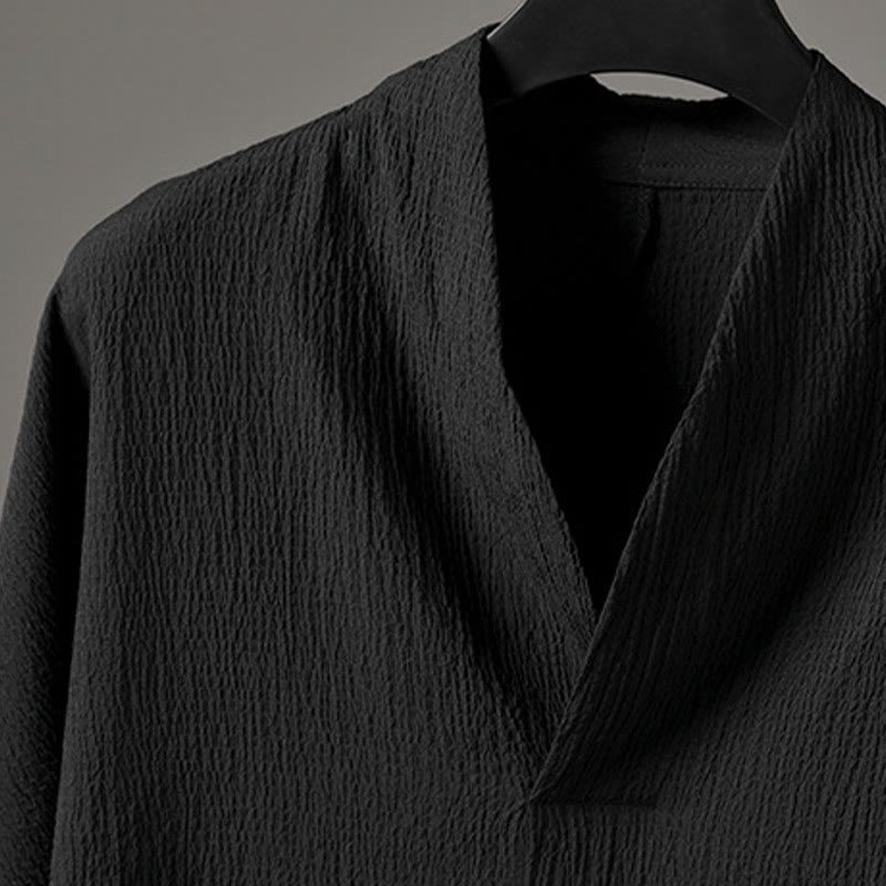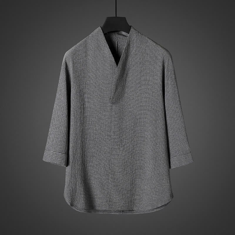 Buddha Stones Casual V-Neck Three Quarter Sleeve Men’s Shirt