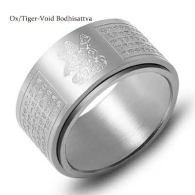 Chinese Zodiac Natal Buddha Rotatable Ring features the Natal Buddha in the center. flanked by the sacred Heart Sutra on either side. Crafted from durable titanium steel. this ring combines spiritual significance with strength. The rotating feature promotes mindfulness and calmness. The Chinese Zodiac Natal Buddha and Heart Sutra symbols offer guidance and protection. fostering inner peace and balance.💕