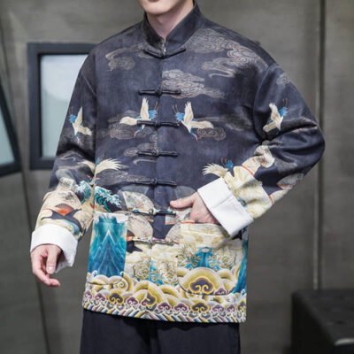 Be the first to review “Buddha Stones Frog-Button Chinese Tang Suit Crane Character Long Shirt Cotton Suede Men Jacket Clothing”