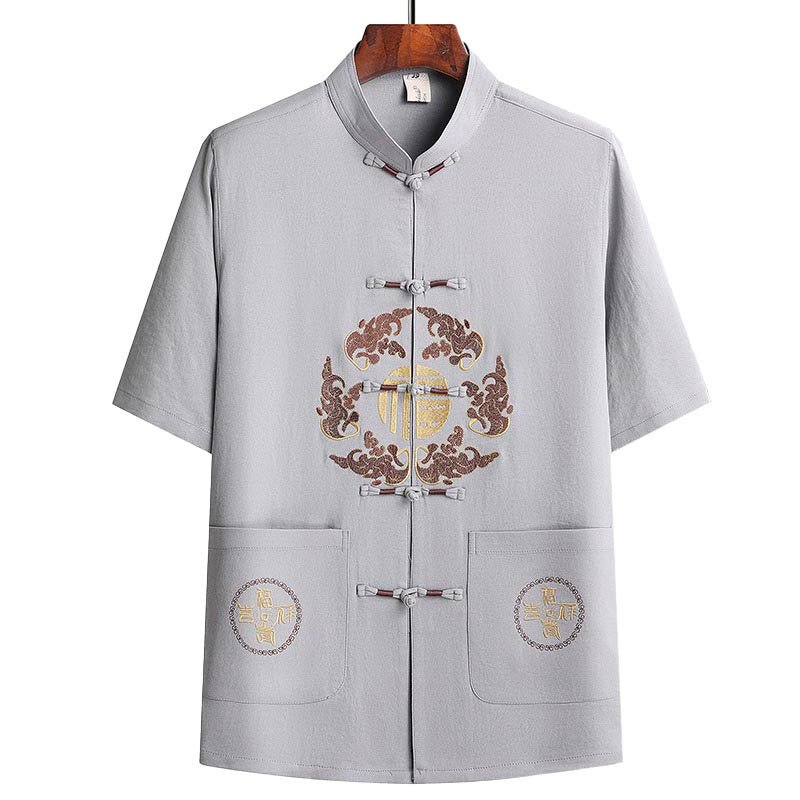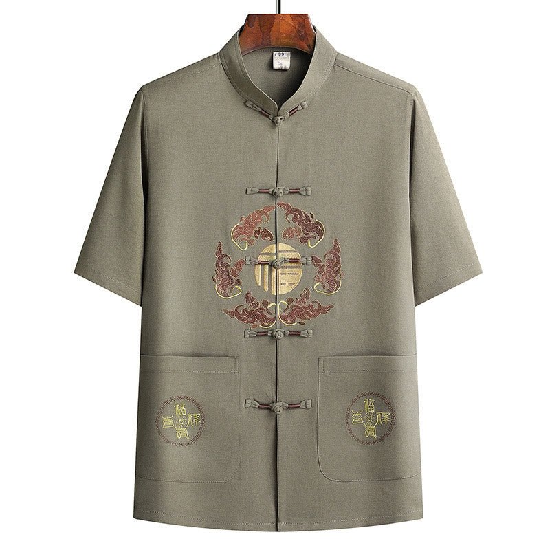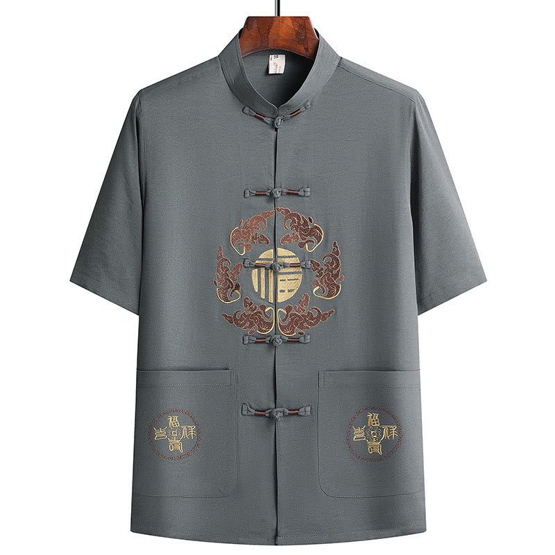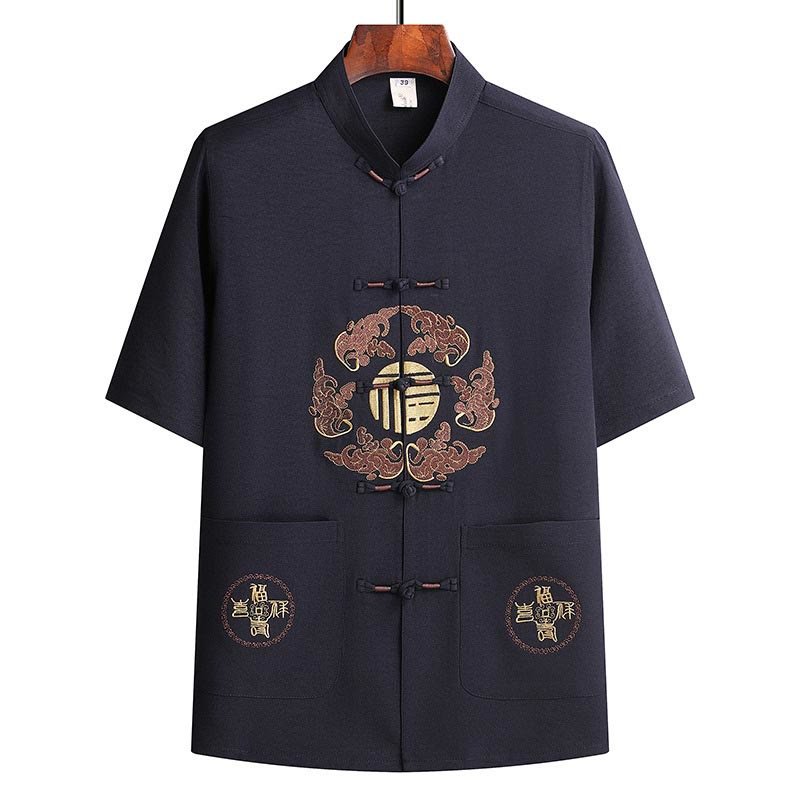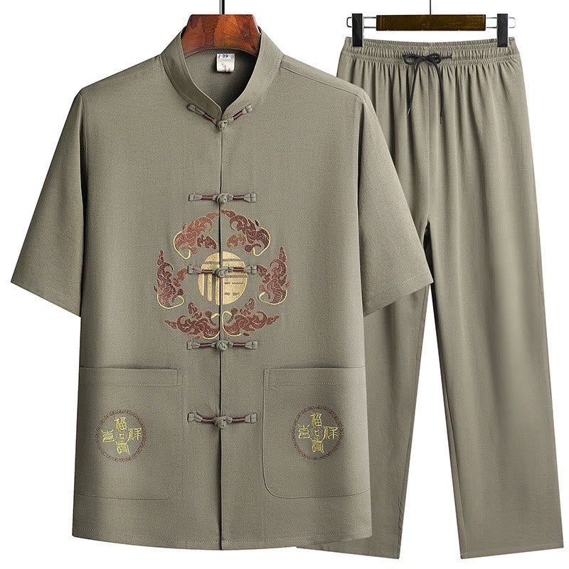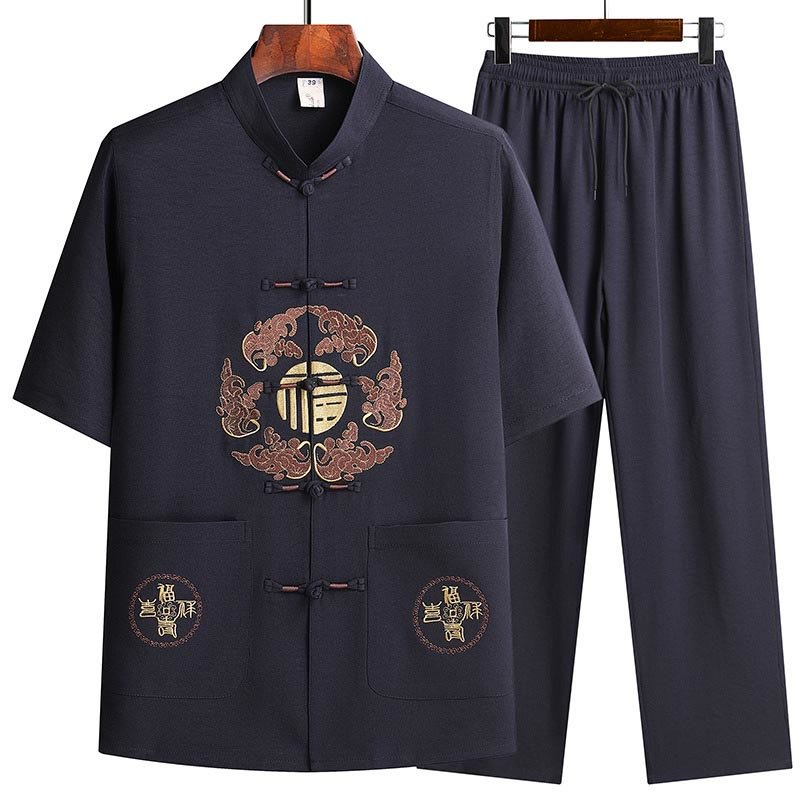 Buddha Stones Fu Character Tang Suit Hanfu Traditional Uniform Short Sleeve Top Pants Clothing Men’s Set