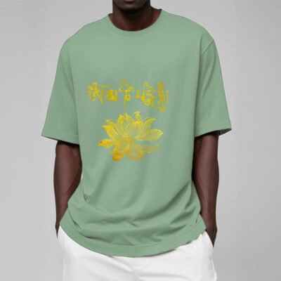 • Swastika卍 Symbol: This T-shirt featuring a lotus flower symbol and the Sanskrit phrase “ཨོཾ་མ་ཎི་པ་དྨེ་ཧཱུྃ།” embodies themes of purity. enlightenment. and spiritual awakening. The lotus represents resilience and beauty rising from adversity. while the mantra signifies compassion and the path to liberation. making this design a profound reminder of inner strength and spiritual growth.